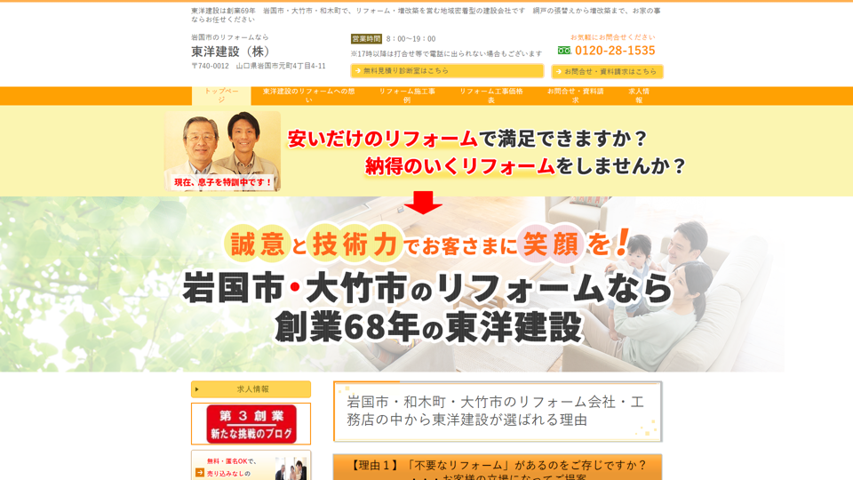 東洋建設株式会社は昭和26年の創業以来、70年近くにわたり数多くのリフォームを行ってきた豊富な経験を持つ企業です。