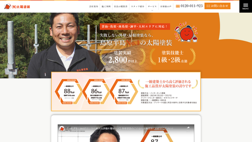 有限会社太陽塗装は、一級建築士から高い評価をいただいている会社で、地元の肩を中心に信頼の厚いのが特徴。