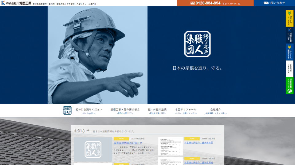 株式会社川畑瓦工業は、鹿児島県鹿屋市、垂水市、霧島市エリアで2,000件以上の施工実績を持つ屋根・外壁リフォーム専門店。