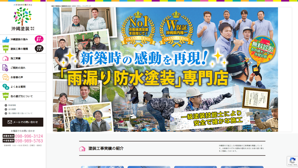 沖縄塗装株式会社は、沖縄市に中部営業所を持つ雨漏り防水塗装専門店。