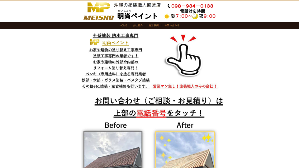 沖縄県沖縄市宮里に位置する明尚ペイントは、建物の塗り替え工事を専門に手がける塗装職人直営店。