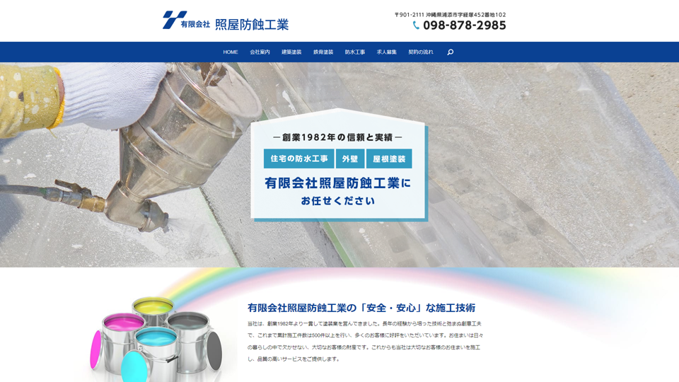 有限会社照屋防蝕工業は1982年に沖縄県で創業し、一般家庭や施設プラントの塗装工事を中心に、500件以上の施工実績を誇る防水・外壁屋根塗装会社です。