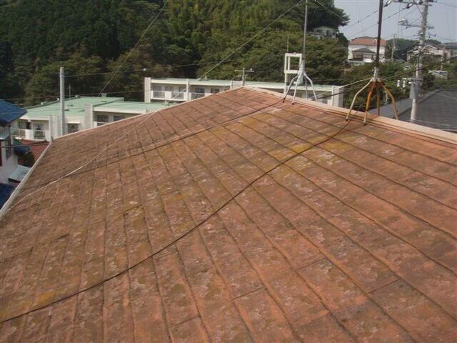 beforeは屋根全体にコケが多く、屋根材自体の色が変わっている状態です。