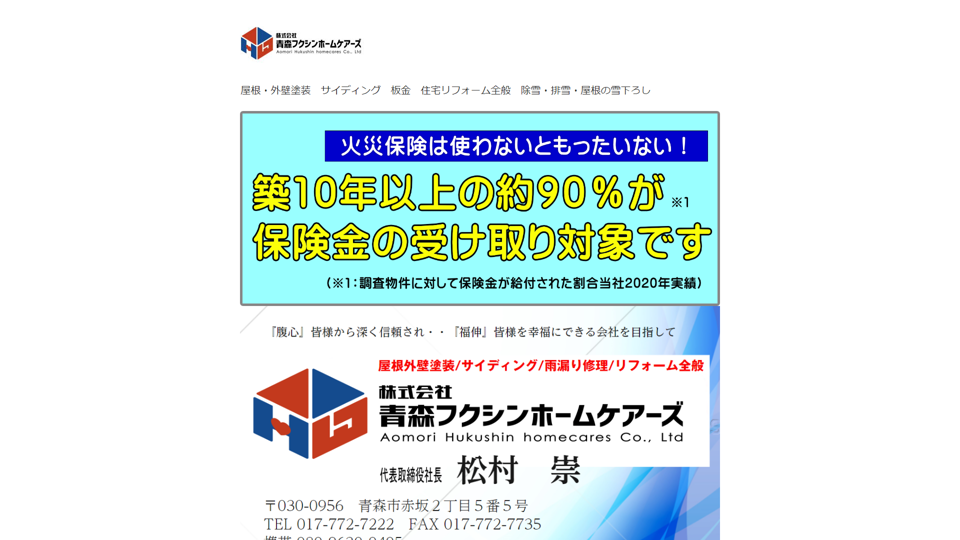 雨漏りの診断は基本的には無料青森フクシンホームケアーズは、会社の拠点を青森県青森市に置いており、屋根や外壁工事を専門とする会社です。