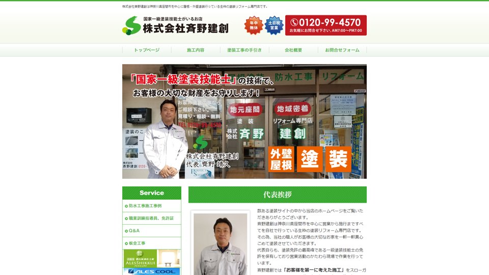 斉野建創は、神奈川県座間市を中心に営業から施行まですべてを自社で行っている生粋の塗装リフォーム専門店です。