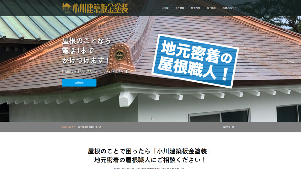 小川建築板金塗装は地域密着型で迅速な対応と手厚いフォローが特徴の屋根塗装会社です。