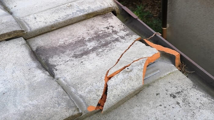 セメント瓦を葺いた屋根の上を歩く際には、間違った場所に足を乗せると瓦が割れてしまう恐れがあります。特に塗装がはげて水が染み込んだ瓦はもろくなっていますので、一層の注意が必要です。