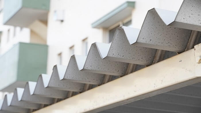 折板とはトタンを機械で折り曲げて台形状に加工したものを指します。強度が高く広い面積の屋根に適していることから工場や商業施設、体育館といった大規模施設の屋根に使用されています。