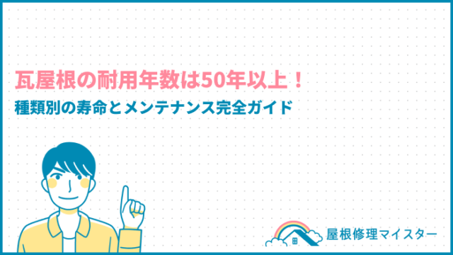 屋根修理 瓦屋根の耐用年数は50年以上!瓦の種類別の寿命とメンテナンス完全ガイド 2025年8月7日 cho-tensha http://ys-meister.jp/wp/wp-content/uploads/logo_ys-meister.png 屋根修理マイスター