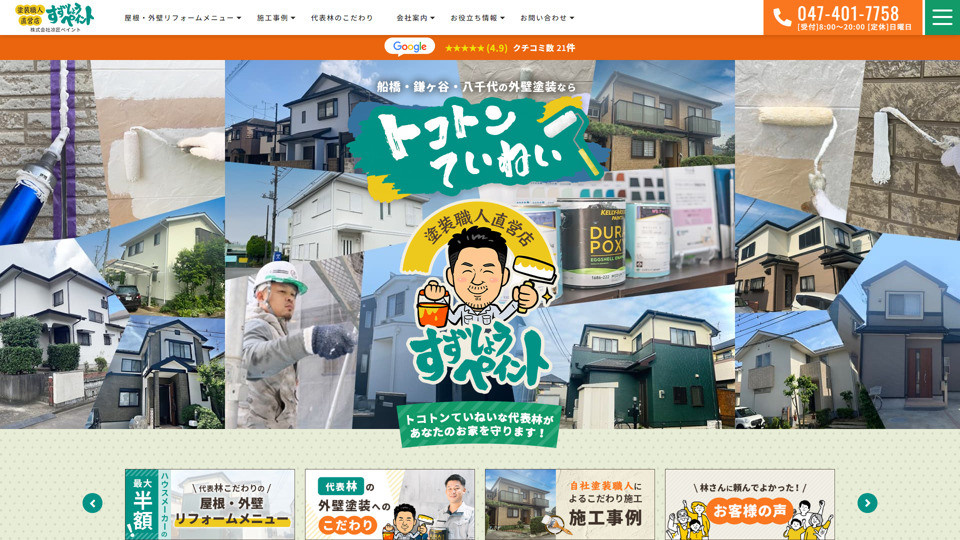 すずしょうペイントは、船橋・鎌ヶ谷・八千代を中心に外壁・屋根塗装を行う塗装店。