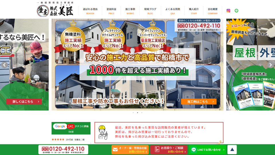 そんな風に迷われている方のために「屋根修理マイスター」編集部が千葉県船橋市の屋根塗装・外壁塗装工事を行っているおすすめ業者をまとめてみました。