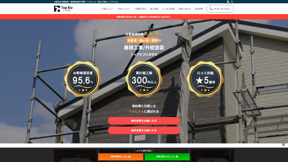 TopBizは、お客様満足度が高いと評価を受けている地域密着の塗装会社です。