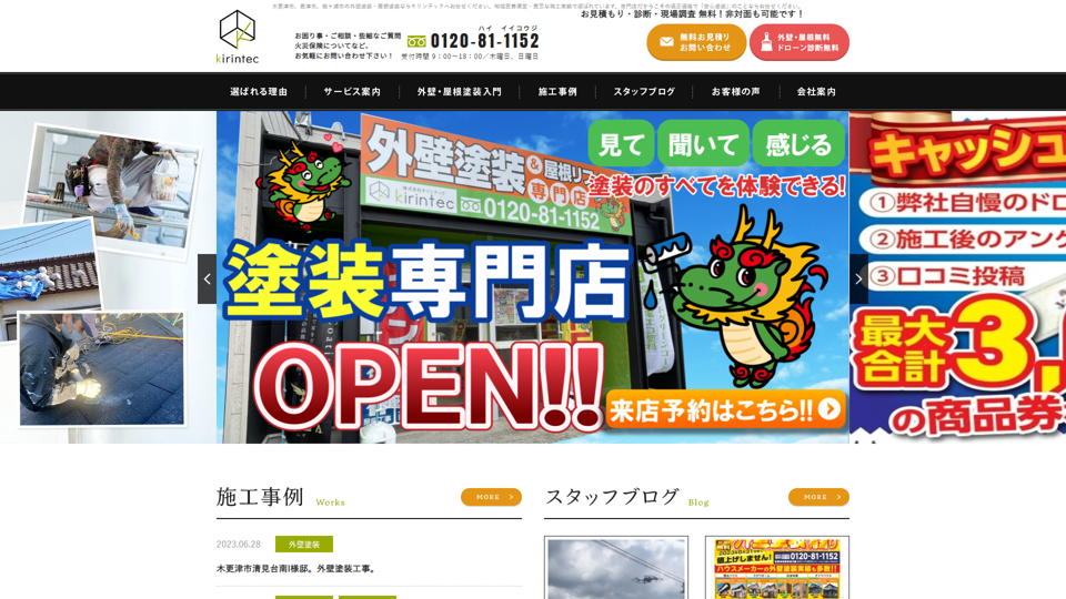 株式会社Kirintecは住宅の外装、内装に対応する少数精鋭の総合的なリフォーム会社です。