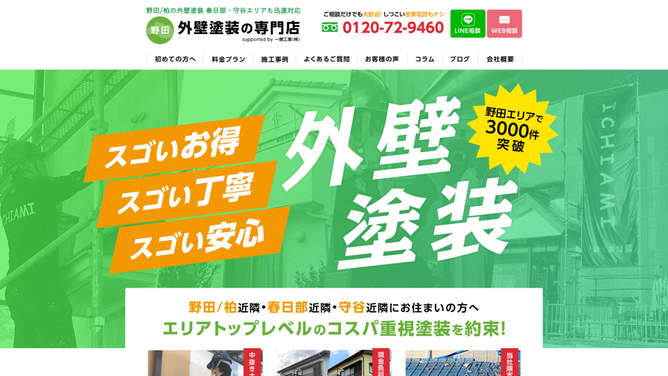 - ✓親切・丁寧な対応と安心価格が自慢の外壁塗装専門店