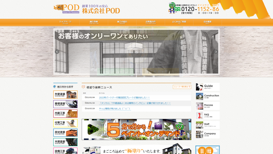 株式会社PODは、100年以上続く伝統の塗装技術と最新の塗装を扱う知識を融合させた施工を行う会社です。