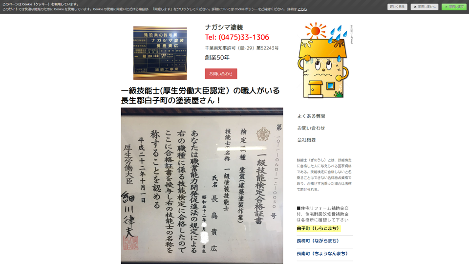 創業はなんと昭和45年!地元千葉県の白子町にて50年以上塗装業を営んでいます。