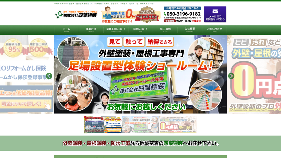 株式会社四葉建装は、千葉市を拠点に500棟以上の施工実績を持つ地域密着型の塗装専門店。
